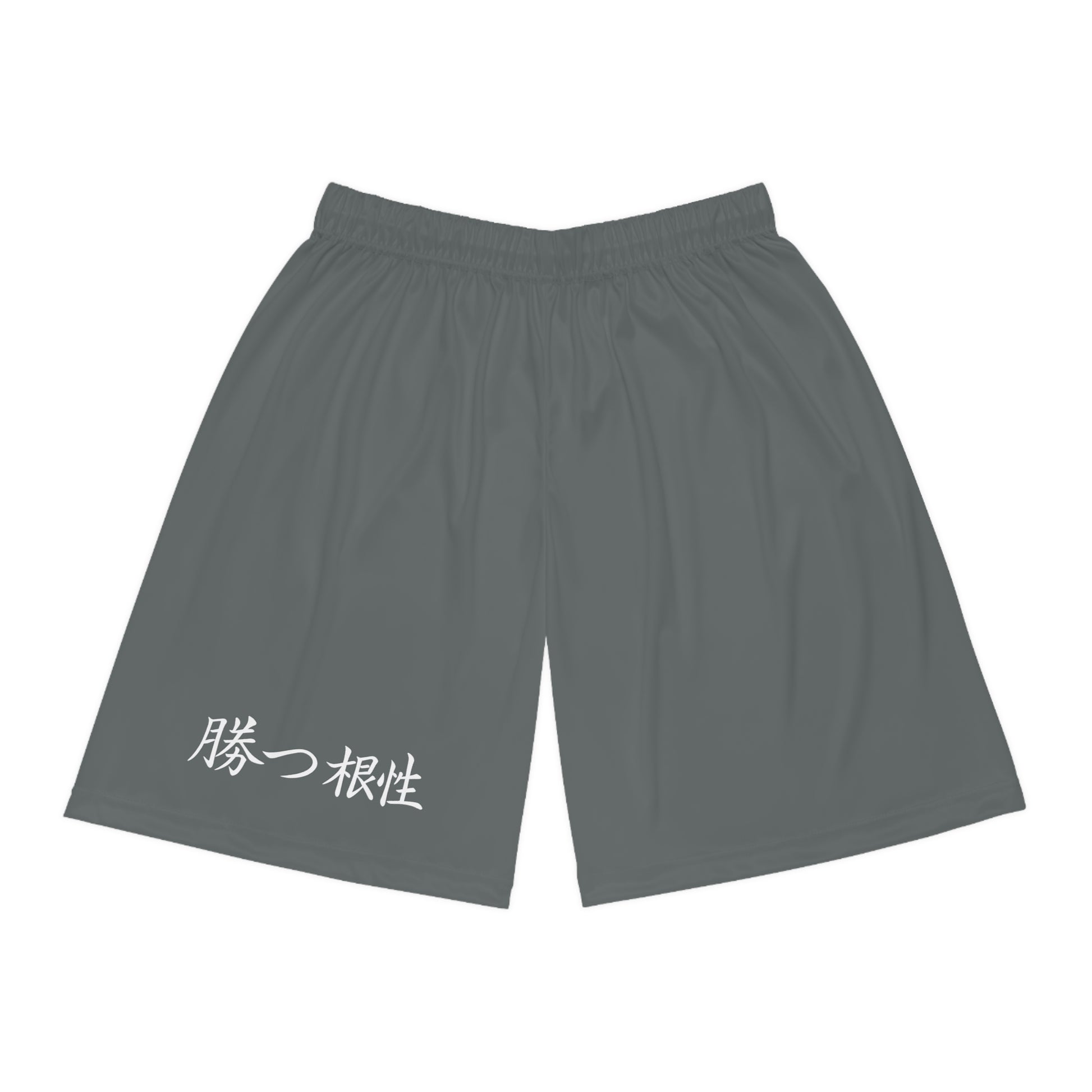 Basketball Shorts — Black Athletic Shorts with Japanese "Win With Guts" Accent
