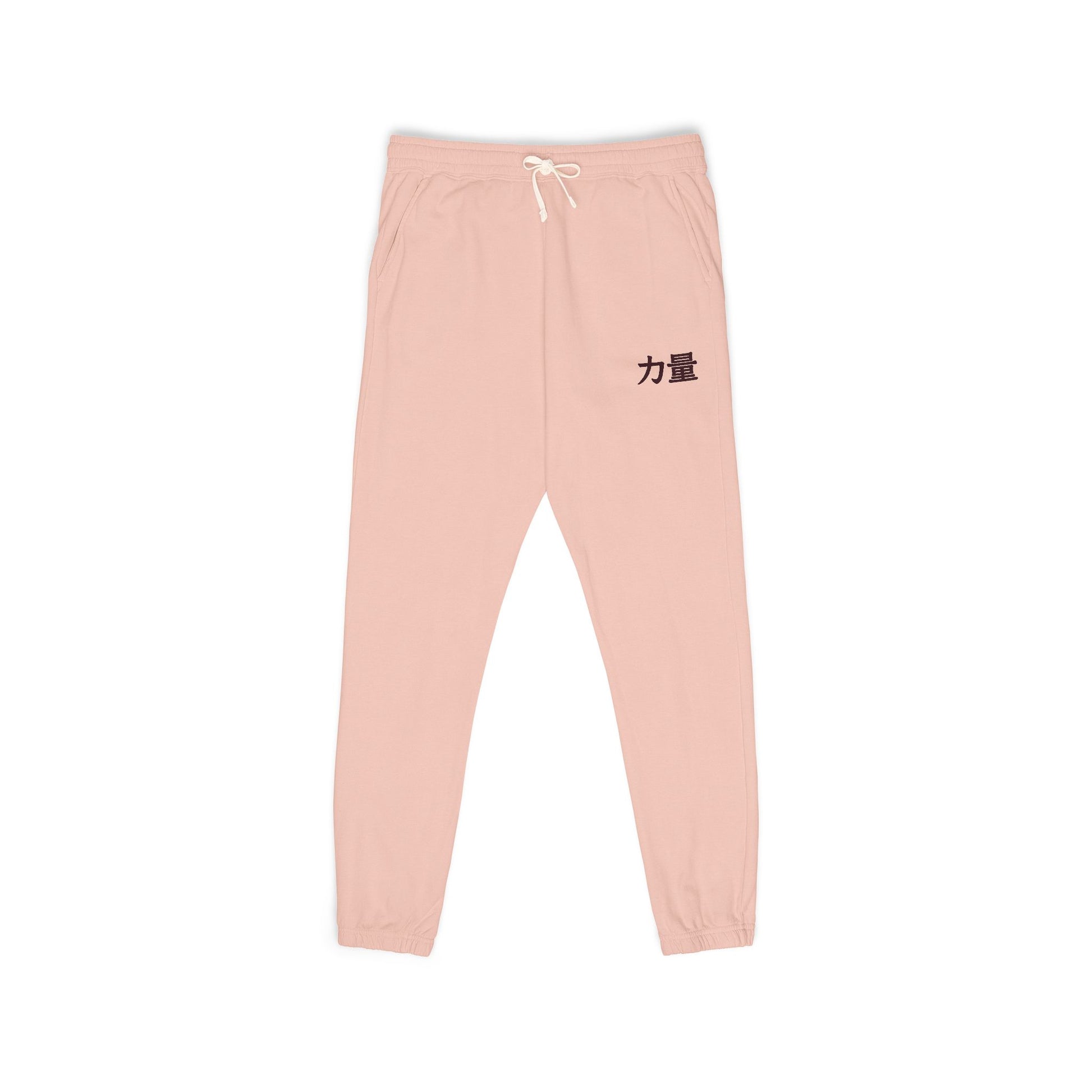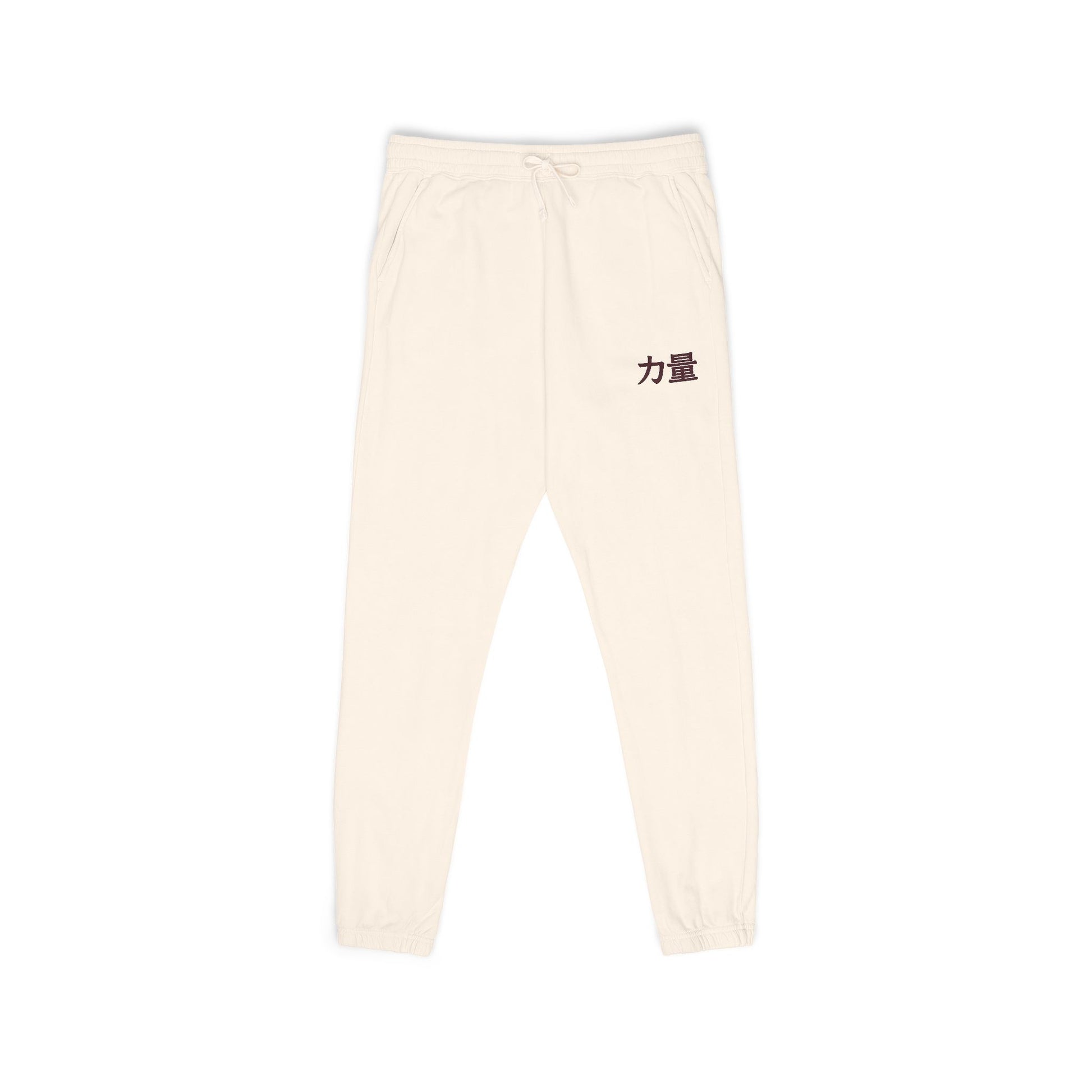 Washed Fleece Sweatpants — "Strength" Chinese Saying Graphic Joggers