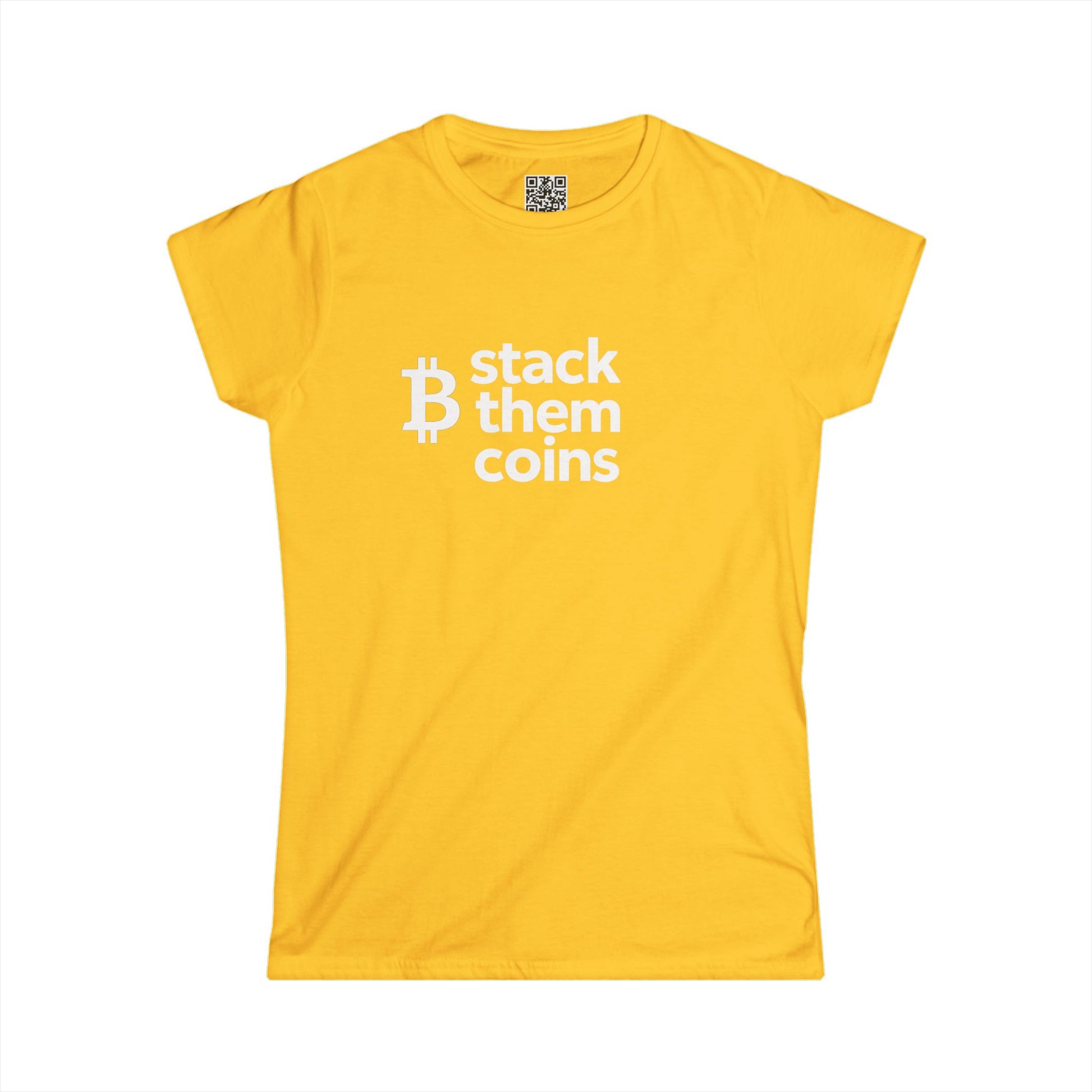 Stack that Cryptocurrency with this stylish Women's Softstyle Tee. Designed for comfort and versatility, this tee effortlessly combines fashion with a positive message. The light fabric offers breathability, making it perfect for everyday wear or lounging at home. Ideal for women who appreciate both style and comfort, this shirt fits seamlessly into various occasions, from casual gatherings to yoga classes. It's also a thoughtful gift for holidays like Mother's Day, birthdays, or anytime you want to celebrate someone's kindness and positivity. With its semi-fitted design and flattering cut, it's ideal for those who want to look good while expressing their philosophy on life.