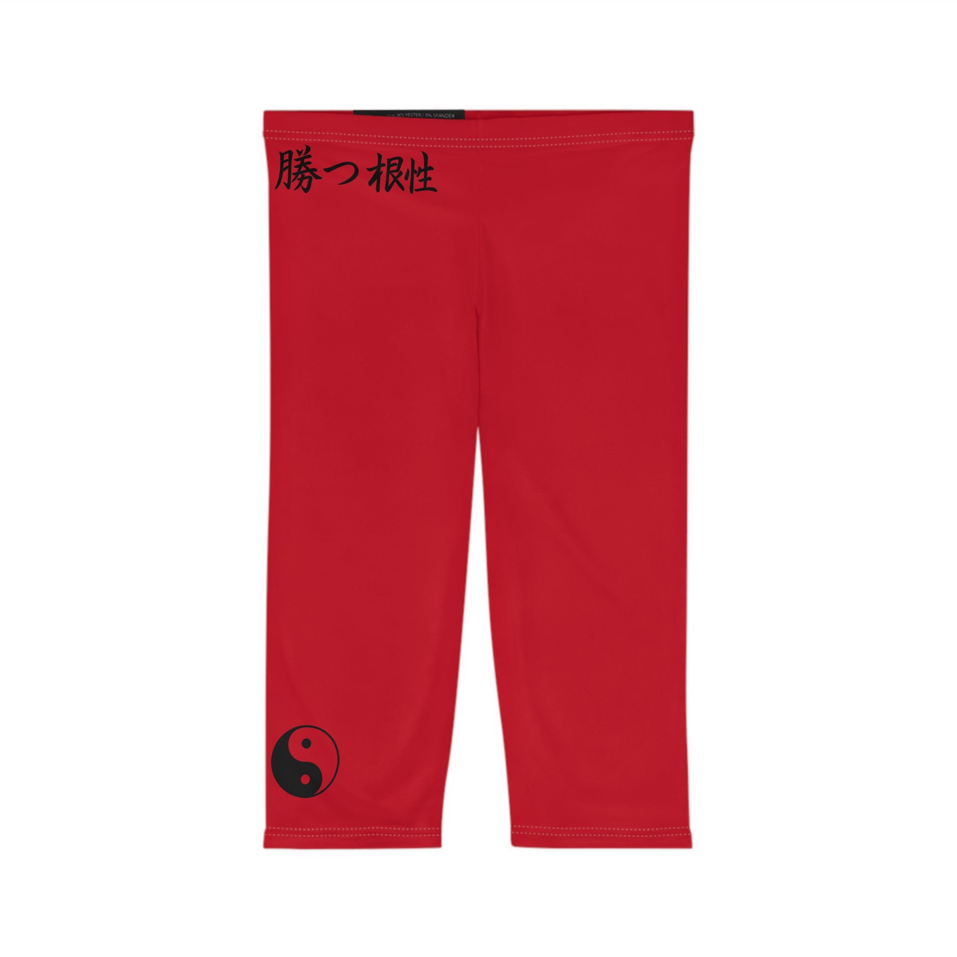 Bold Red Women's Capri Leggings - "Win With Guts", Athletic Leggings, Fitness Wear, Yoga Pants, Everyday Comfort, Stylish Activewear