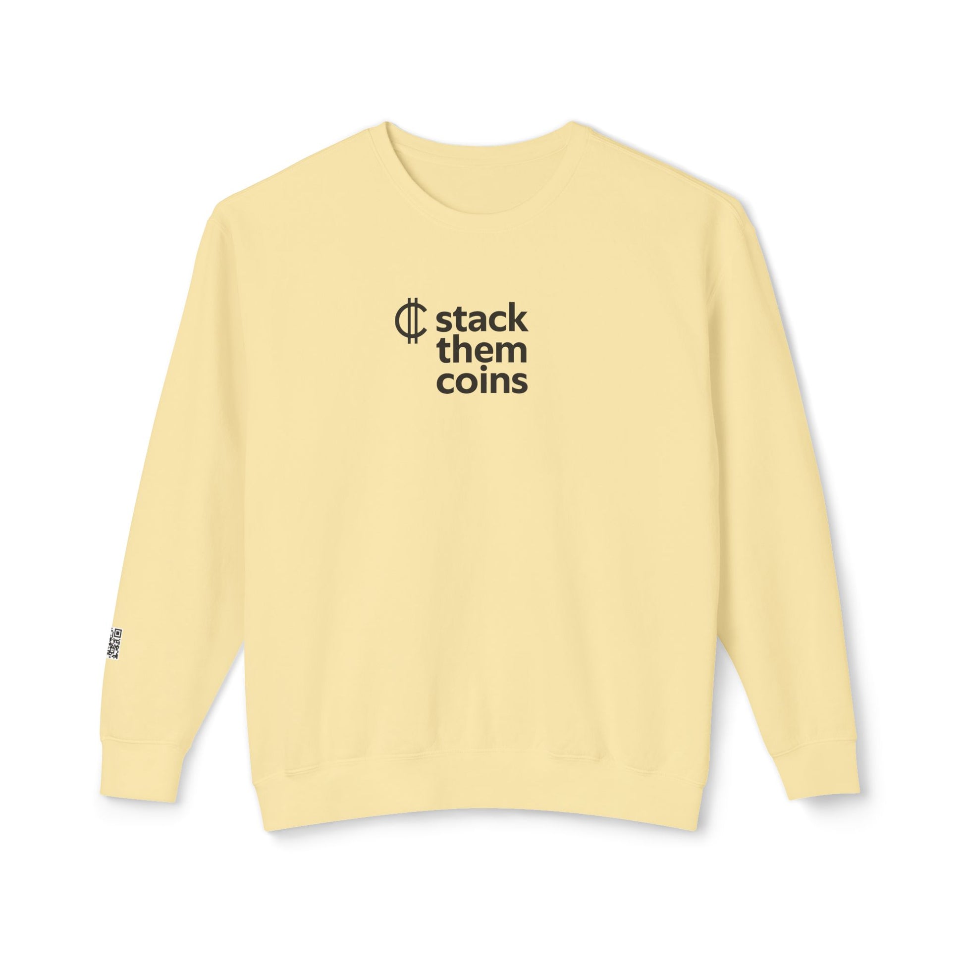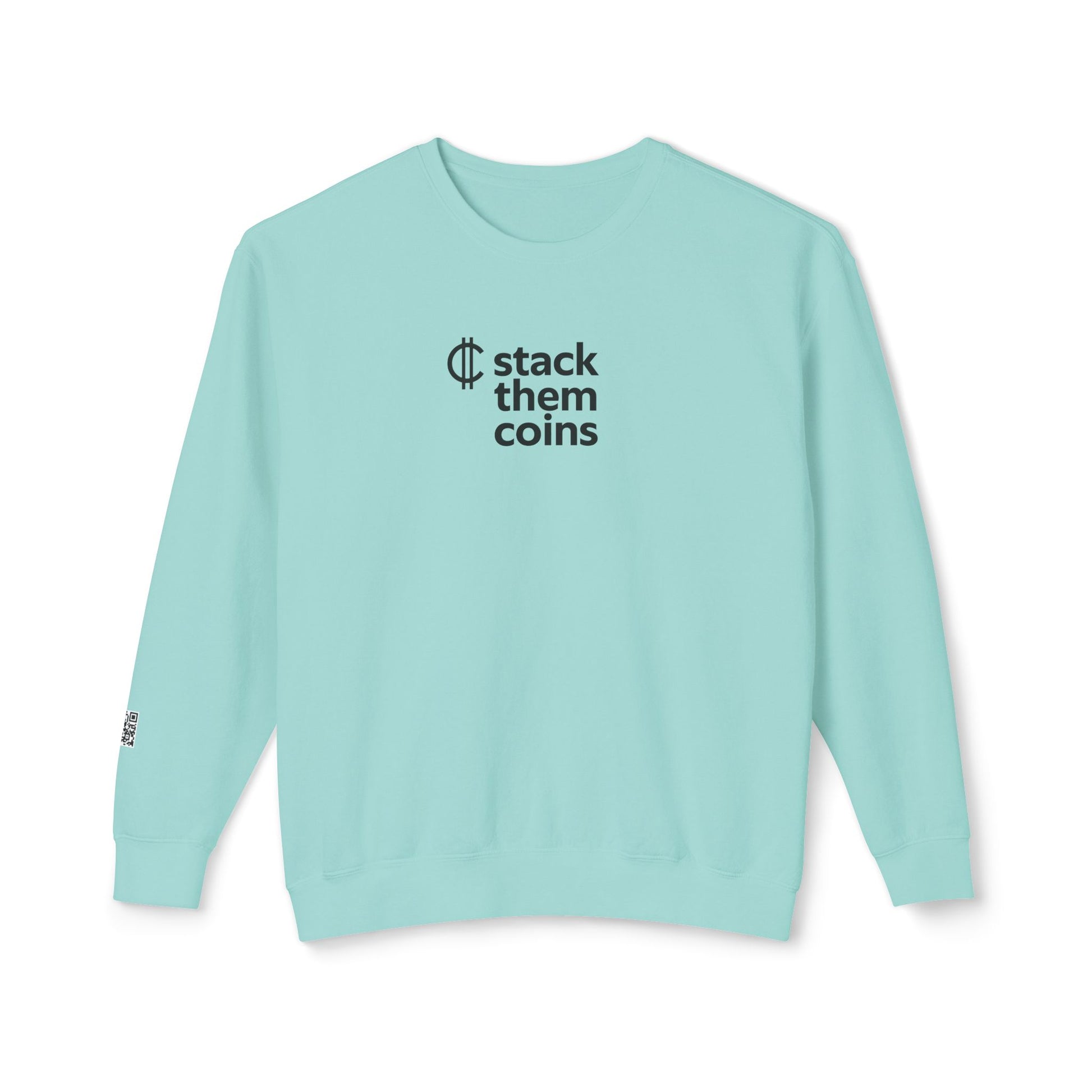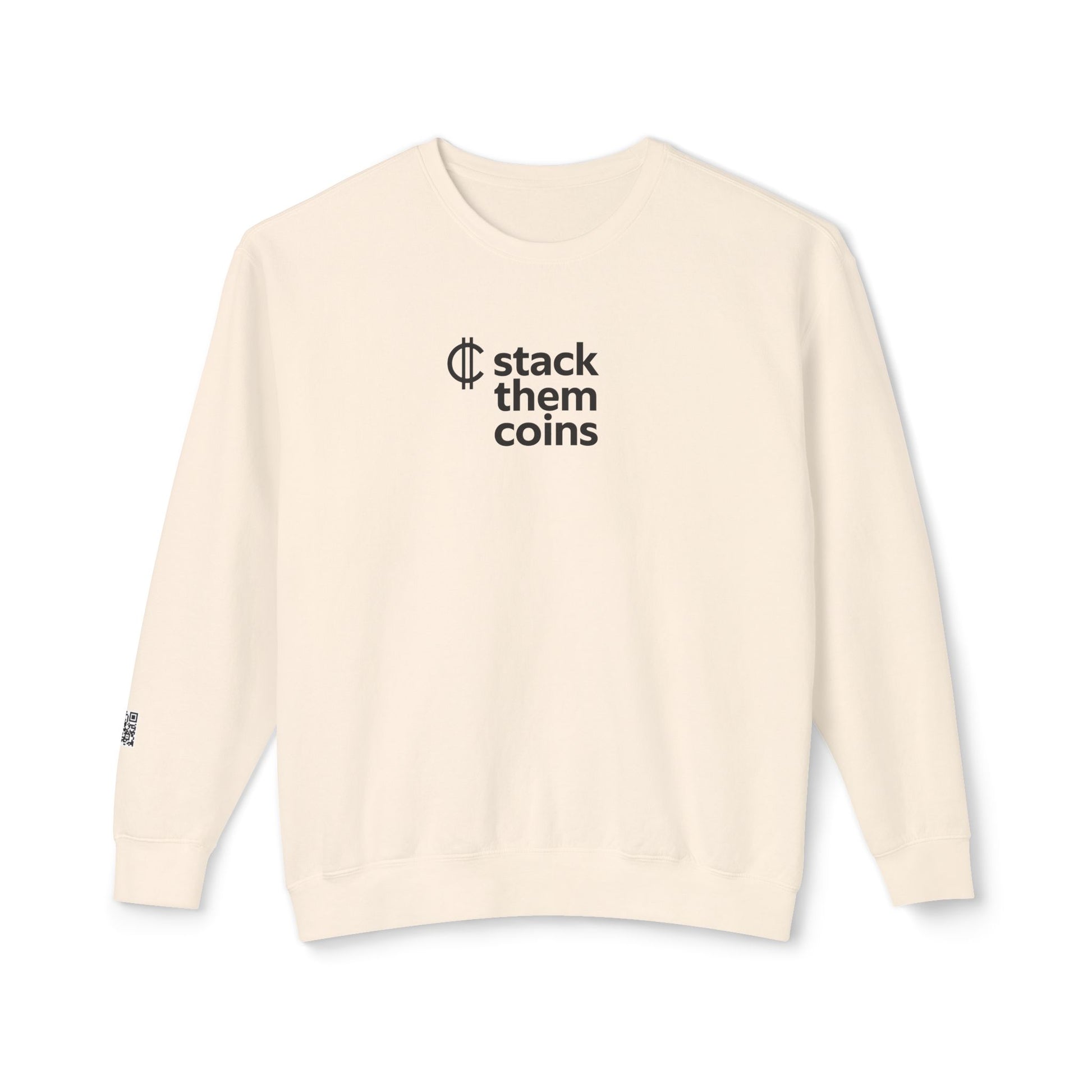 Cryptocurrency/Bitcoin Crewneck Sweatshirt - Stack Them Coins, Cozy for Saving, Crypto Enthusiast, Everyday Wear, Bitcoin Enthusiast