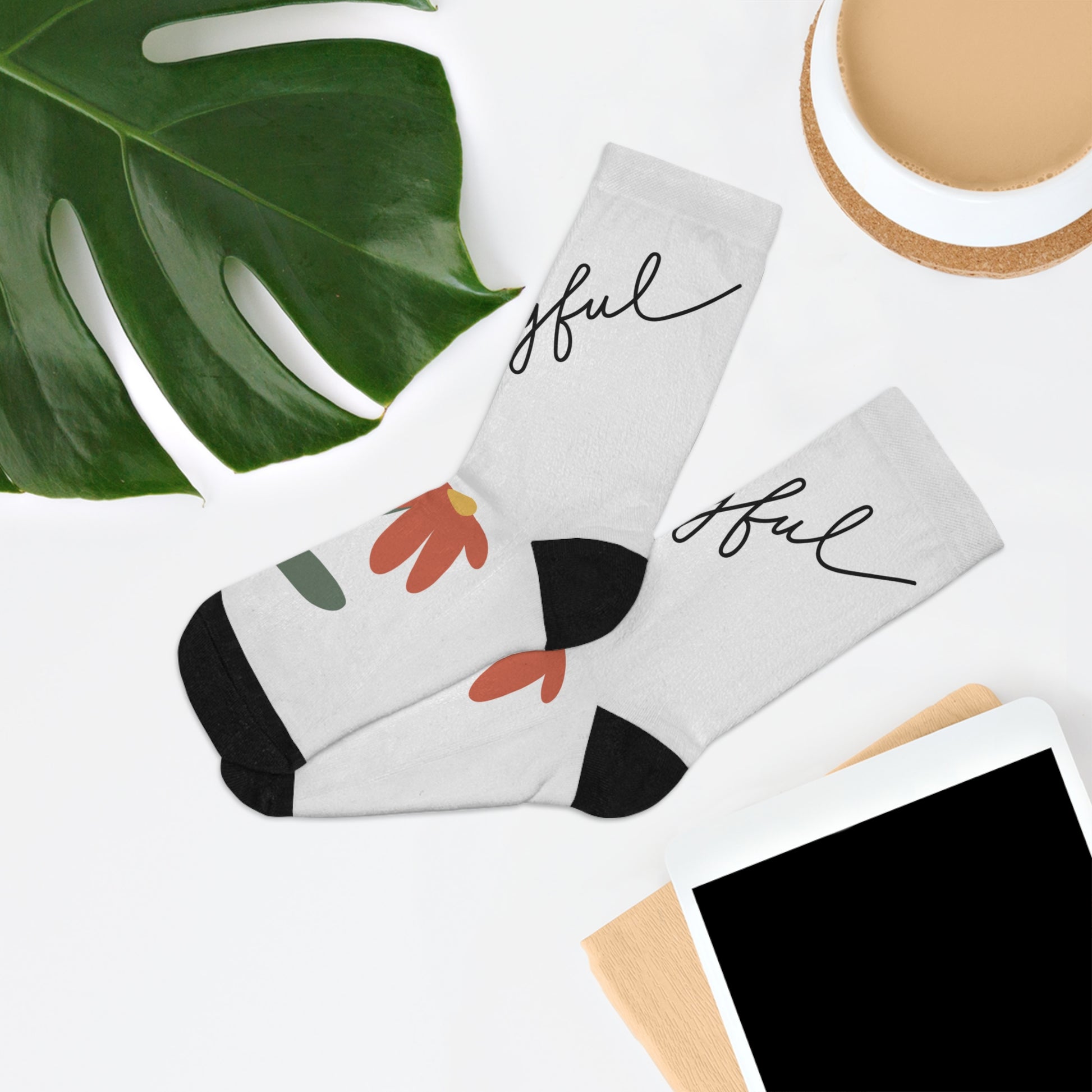 Joyful Floral Recycled Poly Socks - Eco-Friendly Gift, Everyday Wear, Sustainable Fashion, Positive Vibes, Floral Pattern, Sustainable Gifts