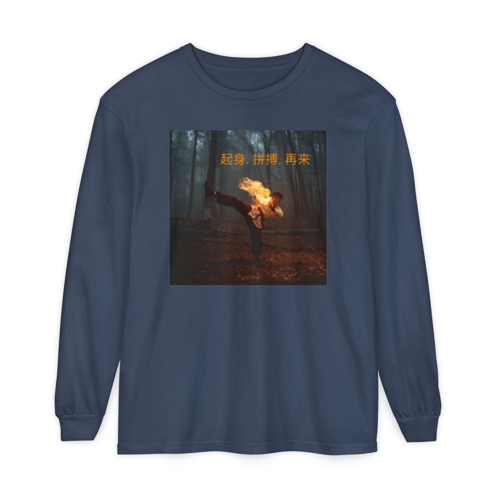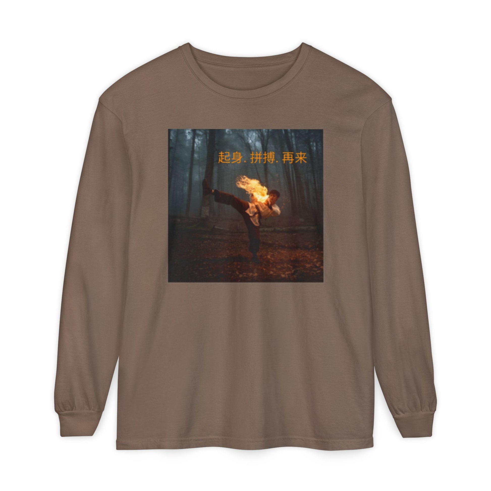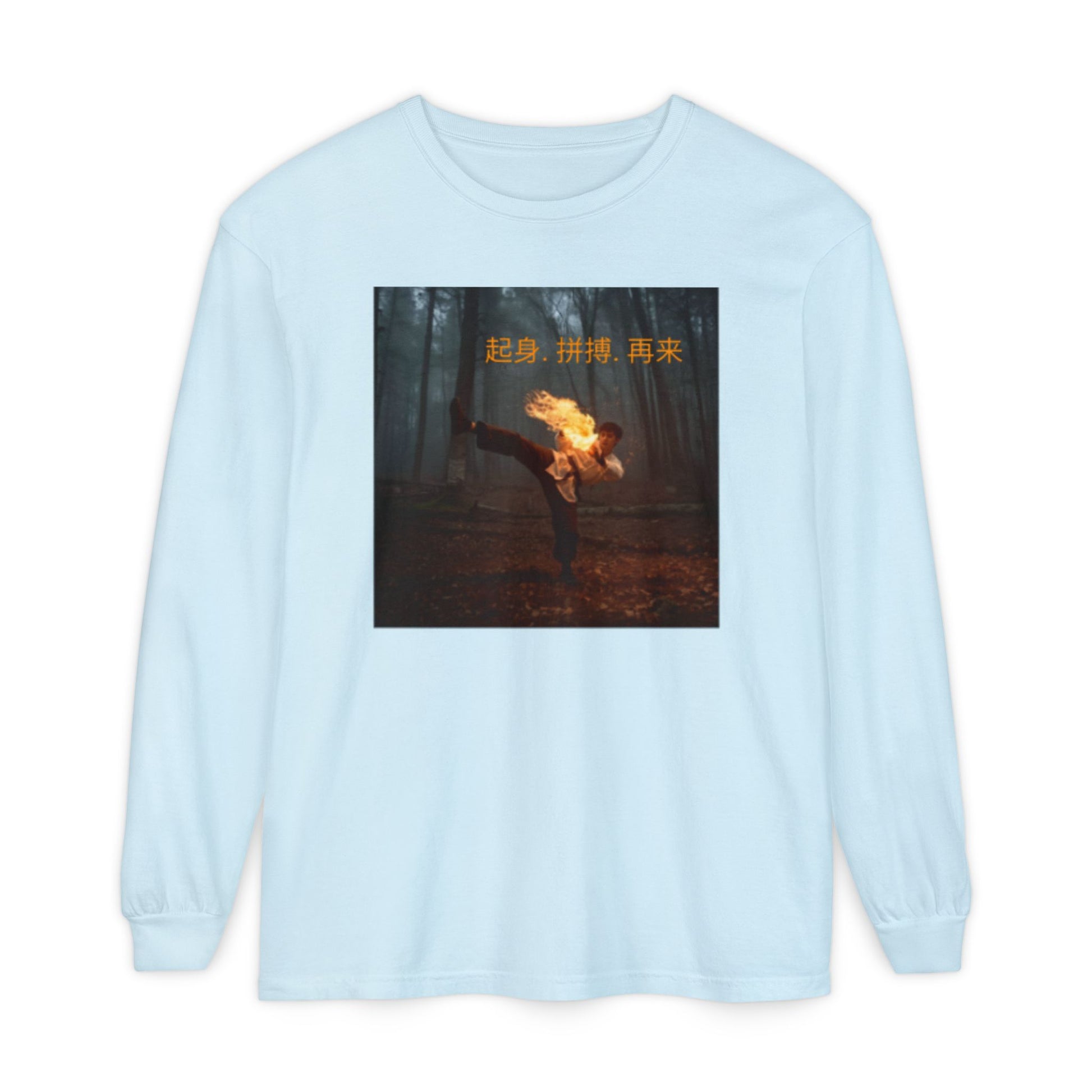 "Rise. Grind. Repeat." - Chinese Sayings - Garment-Dyed Long Sleeve T-Shirt with Unique Graphic Design - Casual, Trendy Wear for Everyday, Gift for Friends, Streetwear