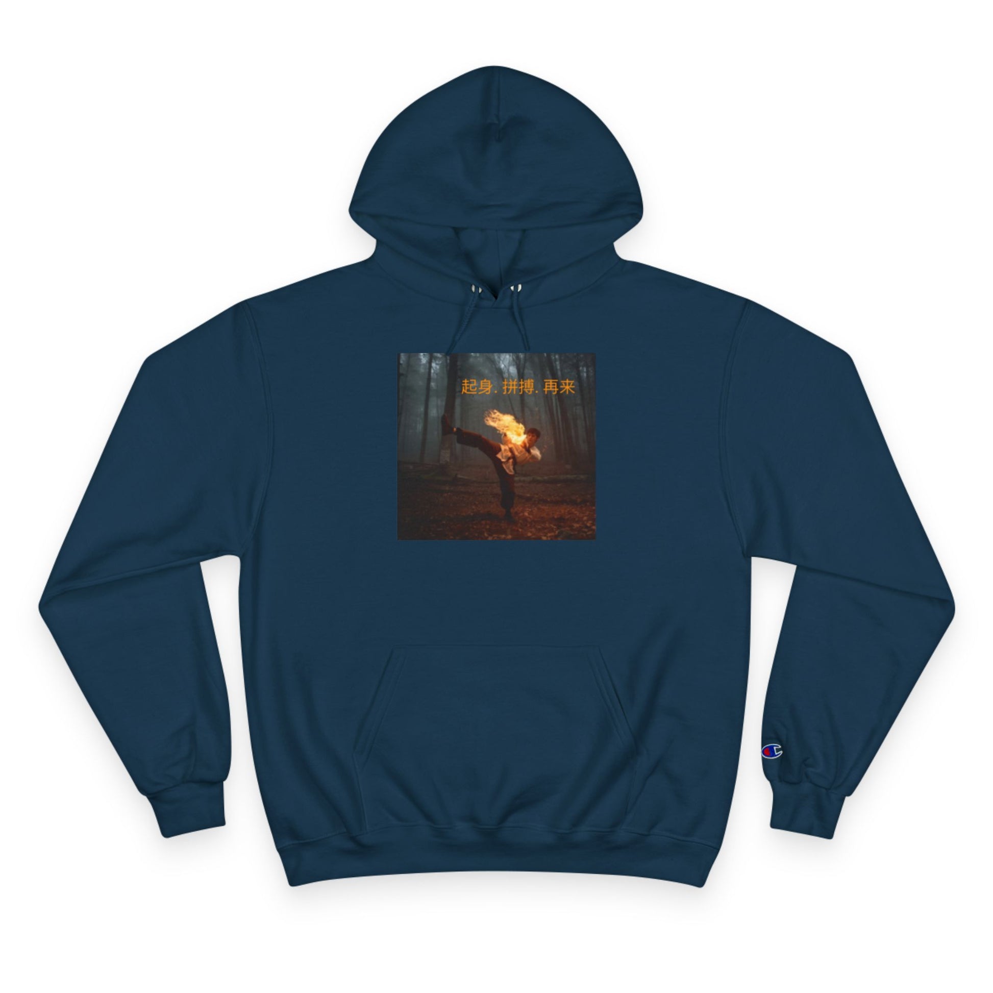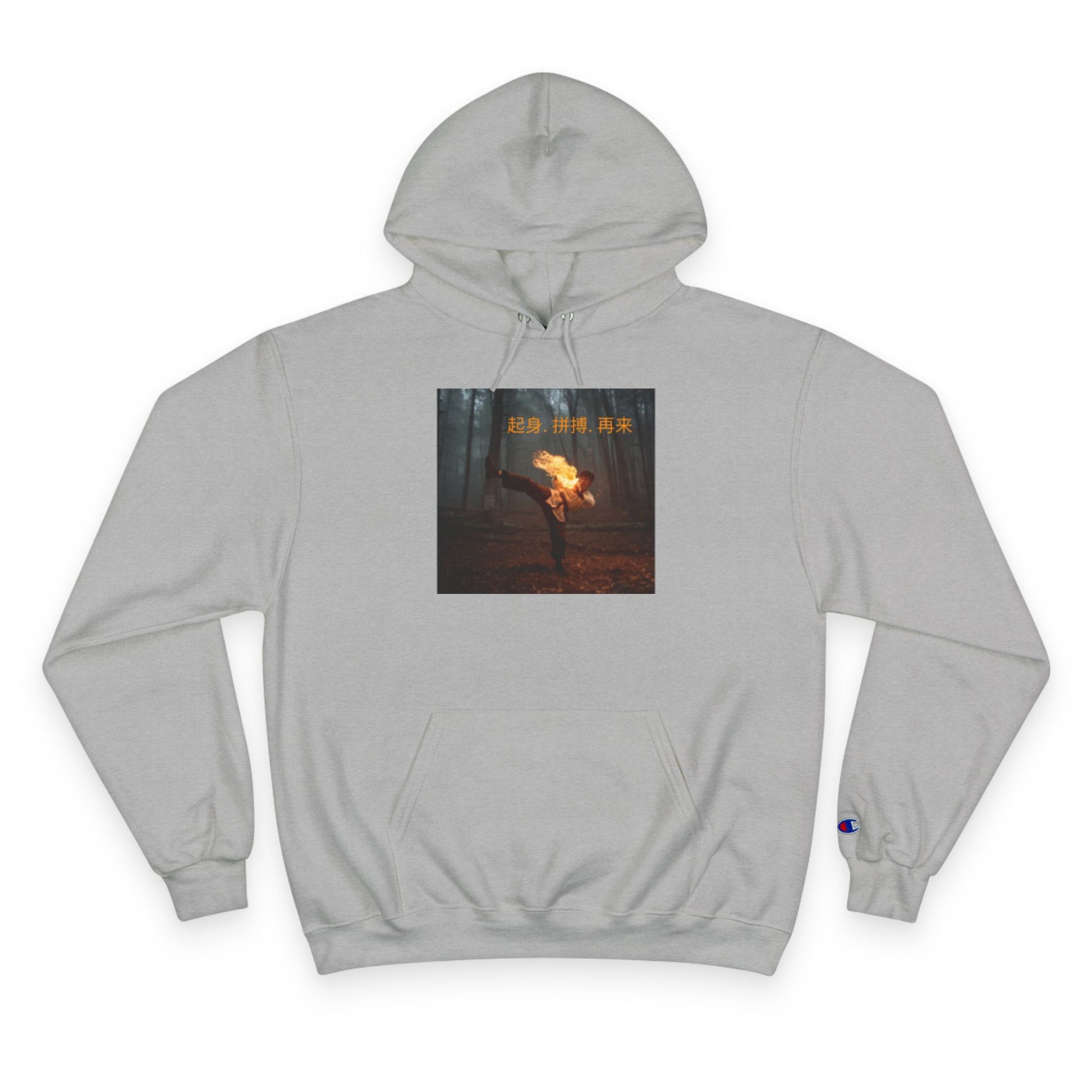 "Rise. Grind. Repeat." - Chinese Sayings; Martial Arts - Champion Hoodie with Bold Art Print, Perfect Gift for Trendsetters, Cozy Streetwear, Fall/Winter Outfit