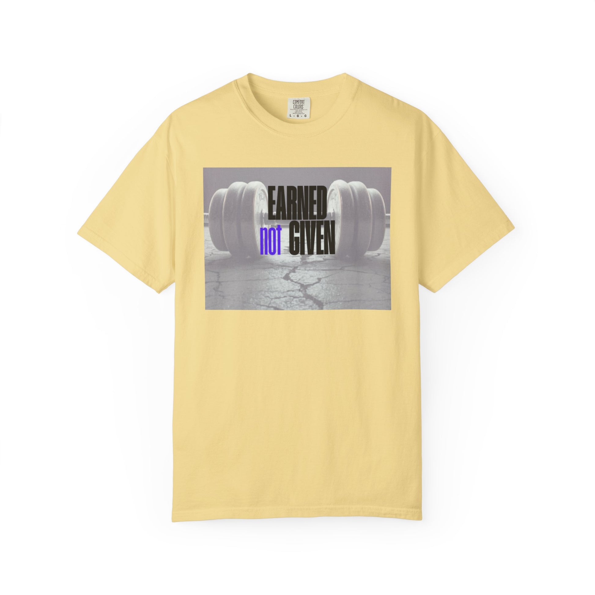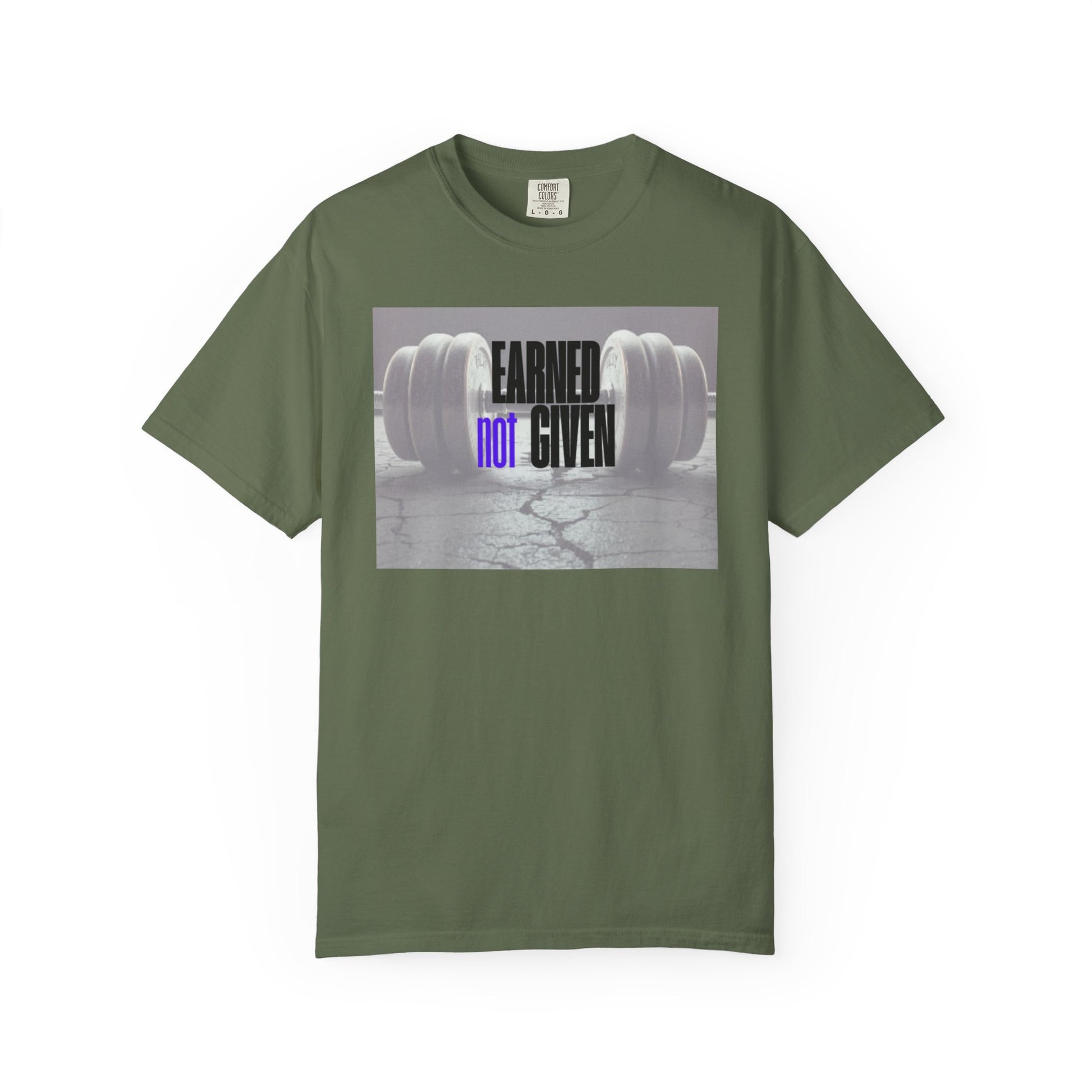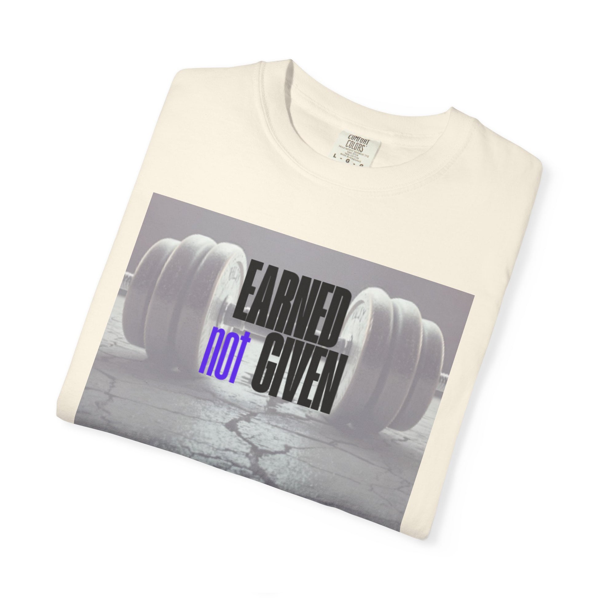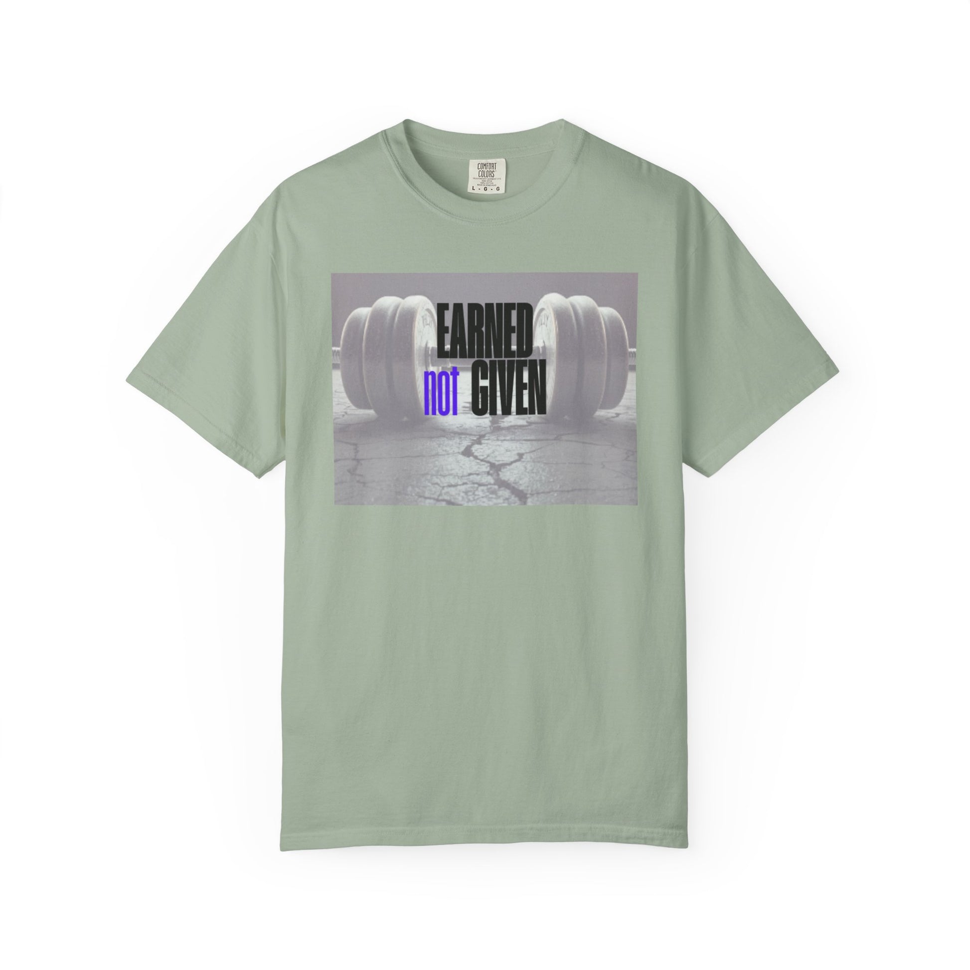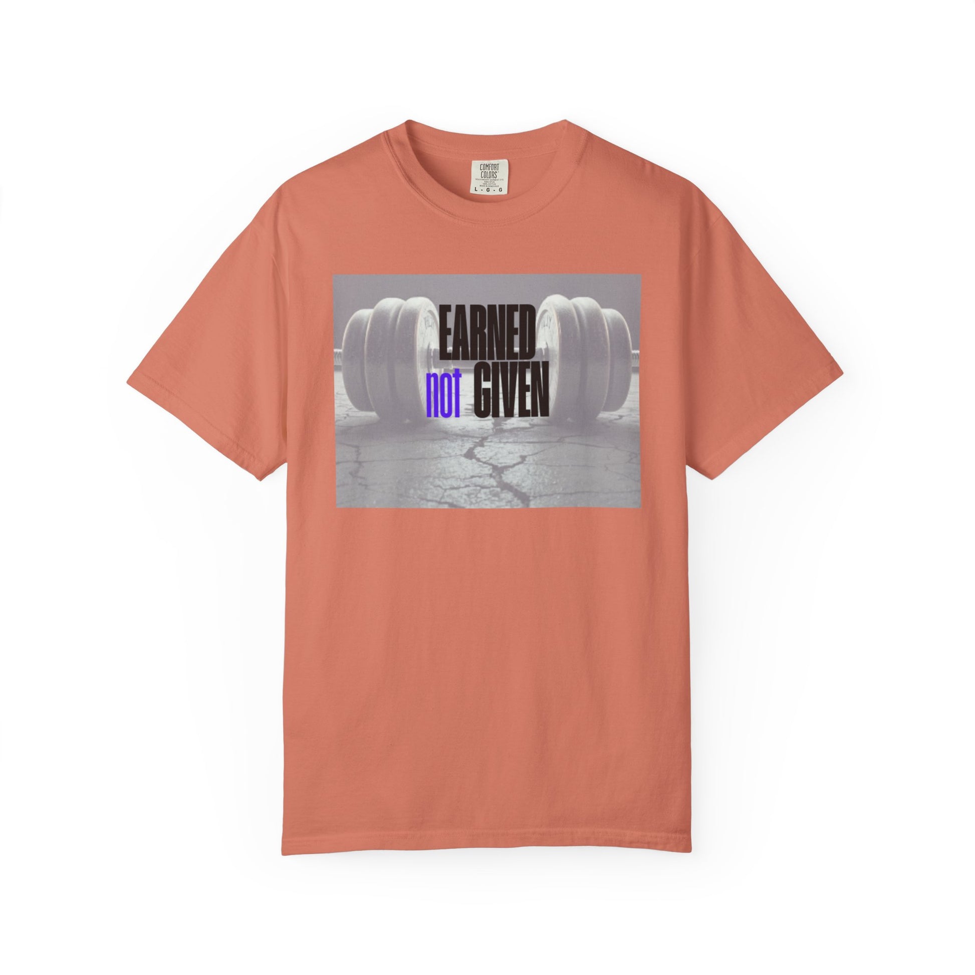 T-shirt motivacional para ginásio, t-shirt de fitness, presente para treino, roupa casual, conquistado, não dado, vestuário para um estilo de vida ativo.